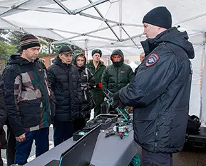 Следующее представленное подразделение можно отнести к самым современным уже потому, что оно укомплектовано средствами вооружения новейшего класса. Отделение использует в своей деятельности сложные технические средства, в том числе беспилотные летательные аппараты. Специалист отделения рассказал, например, об FPV-дронах, показал симулятор для обучения управления такими БПЛА. Миниатюрные дроны могут применяться в помещениях спецназом во время операции по освобождению заложников и в иных случаях. Дроны активно используются в лесопарковых зонах для контроля правопорядка. С их помощью выявляются различные нарушения, а кроме того осуществляются поисково-спасательные мероприятия, например, пропавших людей. БПЛА успешно применяют и для оценки обстановки во время массовых мероприятий.