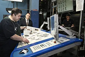 — Всё внутри! — ответил волшебник Пётр Михайлов и показал на мерцающие мониторы. — Видите эти файлы? Это и есть современные «краски-сказки». Раньше для каждой страницы нужно было делать отдельную форму, а сейчас компьютер сразу передаёт изображение на печатные формы. Они у нас не из свинца, а из лёгкого полимера.