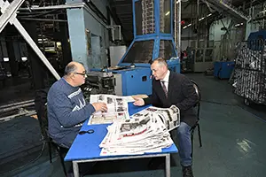 — Это наше бумажное «месторождение», — улыбнулся Пётр Владимирович. — Одна такая бобина весит больше тонны и хватит её на тысячи газет!