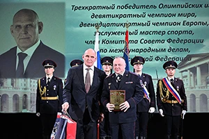 Со сцены кинозала к присутствующим обратился заслуженный мастер спорта СССР Александр Карелин. Он поздравил всех с замечательным выбором — выбором сильных людей: посвящать себя защите правопорядка, принимая на свои плечи как образ жизни служение нашему обществу. И выразил убеждение в том, что быть сильным, особенно неся службу в полиции, — очень важное свойство. Он поблагодарил руководство ГУ МВД России по г. Москве и Центрального музея Великой Отечественной войны 1941-1945 гг. за то, что спортивная церемония подготовлена и проходит в гостеприимном Музее Победы.