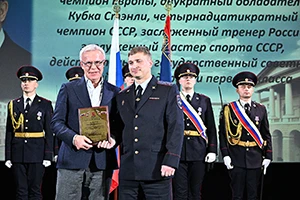 Следующую группу спортсменов на сцене встречал заслуженный тренер России, заслуженный мастер спорта СССР Вячеслав Фетисов. Он отметил, что с уважением относится к людям, которые обеспечивают правопорядок, и благодарен полицейским за безопасный город, в котором родился. Безопасность — это то, что в мире сегодня ценится особо, как и труд полицейских. А спорт помогает им решать поставленные задачи, достигать в том числе служебных побед. Прославленный хоккеист отметил, что Петровка, 38 — это тоже гордость нашей страны, ориентир для молодых ребят, ищущих своё призвание.