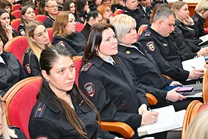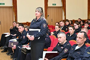 Лекторов сменил подполковник полиции Андрей Барынин, который выступил с докладом об организации отбора и поступления граждан на службу в органы внутренних дел Российской Федерации.