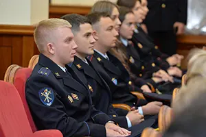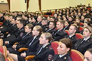 — Мы собрались, чтобы поздравить вас, молодых офицеров, с поступлением на службу в подразделения Главного управления МВД России по городу Москве, обсудить волнующие темы, познакомить с руководителями. В текущем году наши ряды пополнили 342 выпускника, из которых 53 окончили обучение с красным дипломом, один с золотой медалью. Мы рассчитываем, что все вы успешно адаптируетесь к условиям работы и вольётесь в ряды московской полиции. От вас в том числе будет зависеть будущее нашей страны, а также безопасность существования людей в нашем городе.
